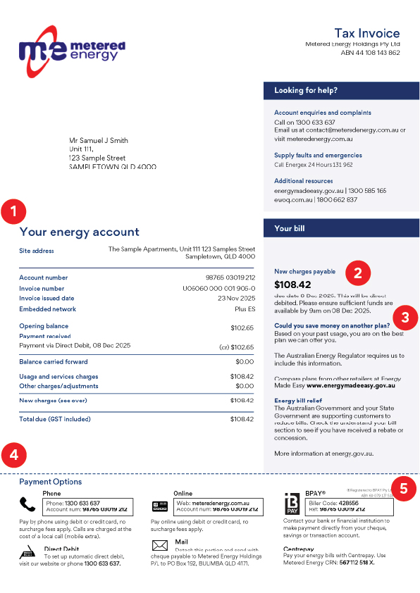 Here you’ll find whether an actual or estimated meter read has been taken. Sometimes we might need to estimate your energy usage rather than bill you on actual usage data.